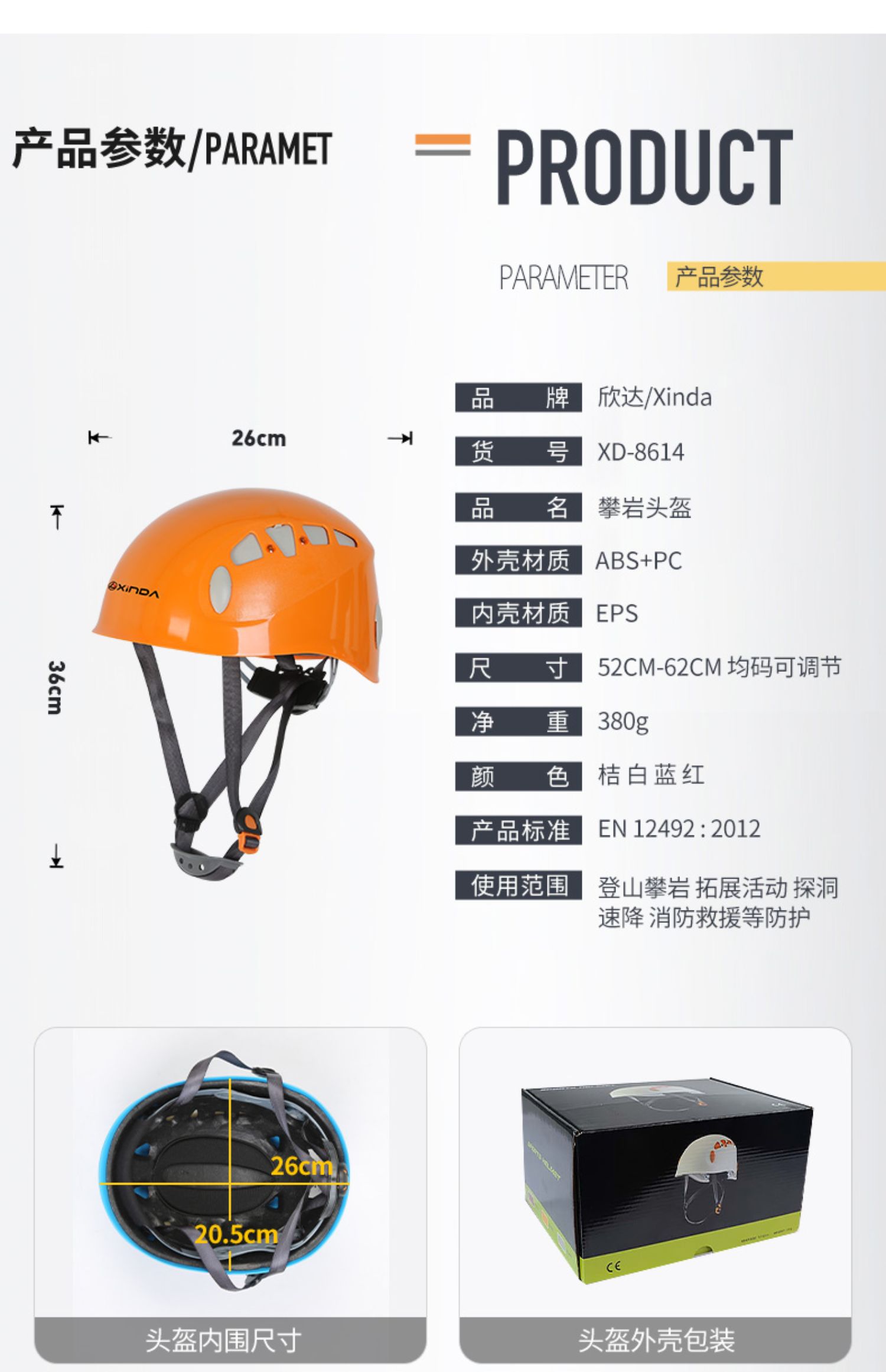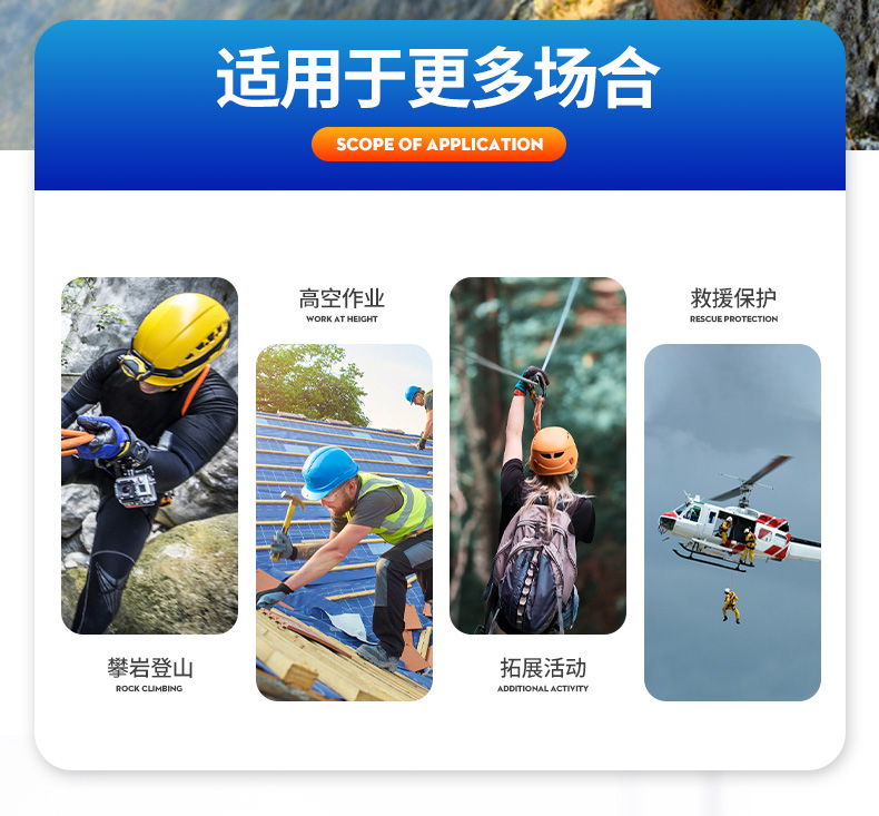 適用: 攀岩、溯溪、登山、高空作業、懸掛、頭部保護