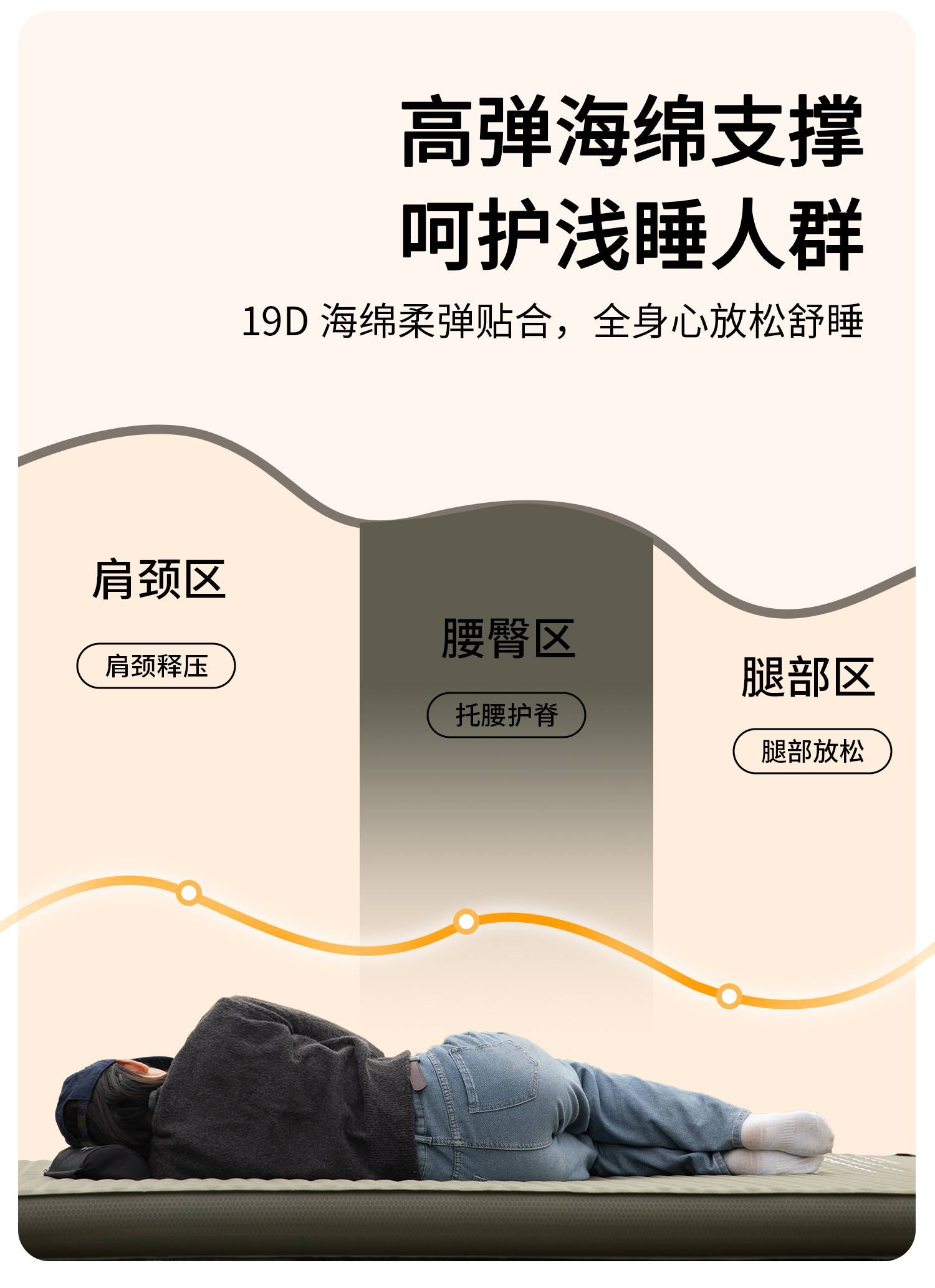 🔸採用19D高彈力海綿填充,舒適柔軟,露營也能睡得超舒服