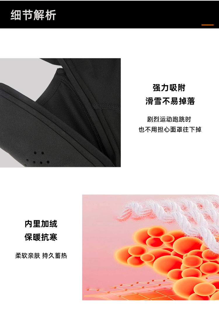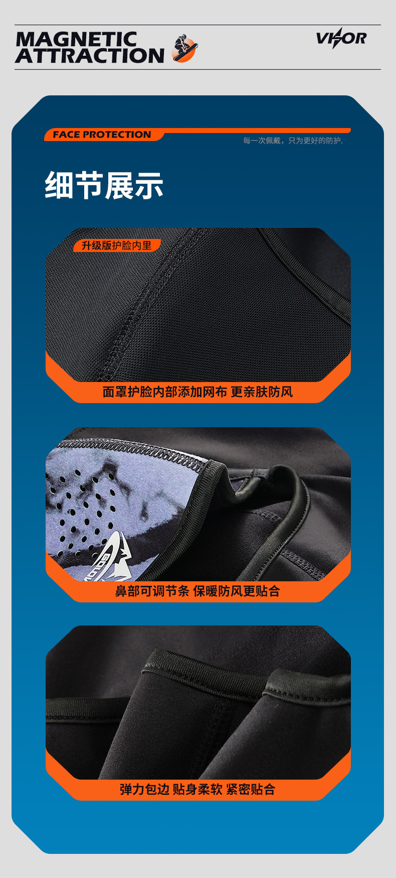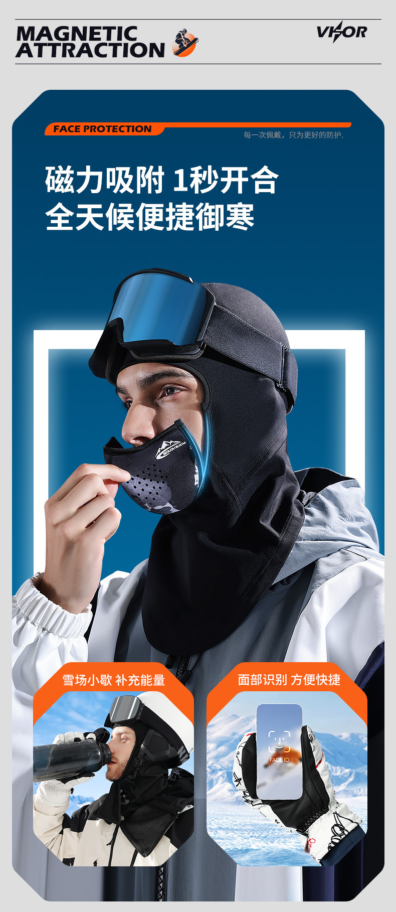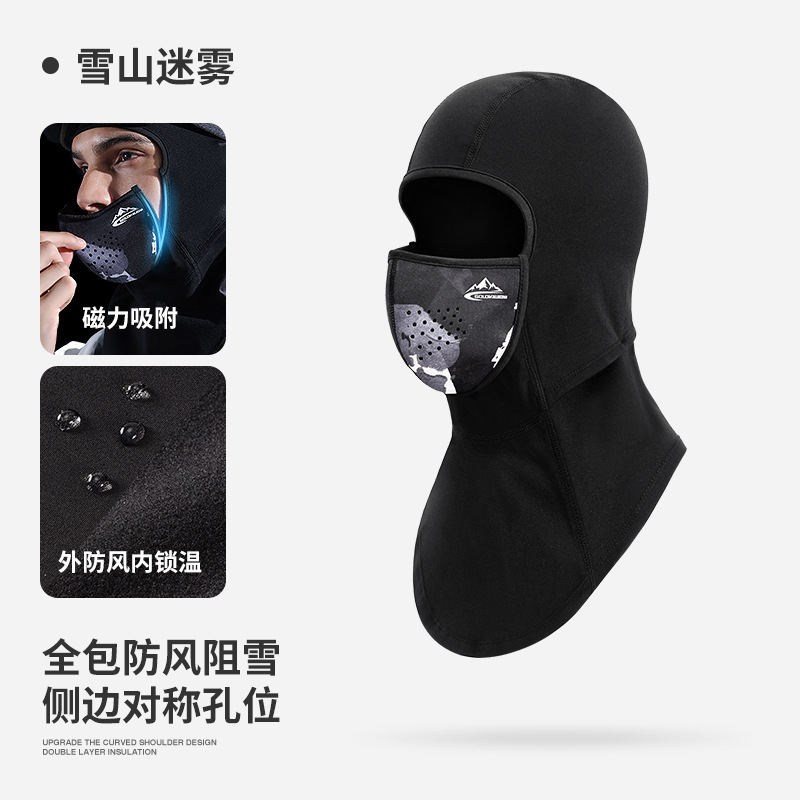 蓄熱鎖溫 / 透氣網孔 / 外層防風 / 內層刷毛帽子、口罩、圍巾的功能同時具備口鼻開孔透氣 高強度運動一樣暢快呼吸磁力吸附口罩,開合飲食飲水都方便
